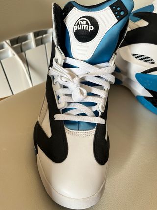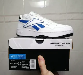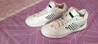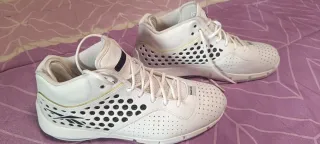 Me las puse para probarlas, pero no he llegado a jugar con ellas. En muy buen estado, comprobar fotos. Zapatillas de baloncesto Reebok en color blanco con detalles en negro. - Diseño de caña alta. - Perforaciones en la parte delantera y lateral. - Detalle de logo en el lateral.