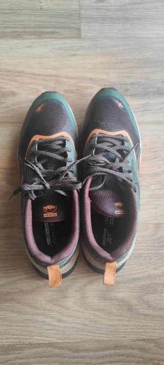 Zapatillas Reebok Lavante Trail 2 , talla 45, en tonos verdes y naranjas. - Diseño deportivo. - Detalle de logo en la plantilla. - Tirador trasero para facilitar su colocación. Usadas durante una semana, las vendo porque me quedan un poco pequeñas.