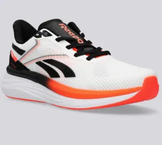 Zapatillas deportivas Reebok con un diseño moderno y llamativo. Nuevas a estrenar en su caja. Talla 42 - Combinación de colores blanco y naranja. - Detalles en negro. - Suela con amortiguación.