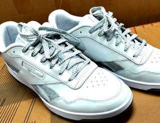 Zapatillas deportivas Reebok de piel. - Diseño moderno y cómodo. Elegantes - Combinación de colores gris y blanco.