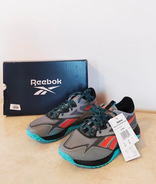 Zapatillas Reebok Nano X2 TR Adventure, completamente nuevas y listas para usar. - Diseño moderno con detalles en naranja y turquesa. - Cordones resistentes y llamativos. - Suela con buen agarre.Diseñadas para entrenamiento, trail ligero y uso outdoor, pero también perfectas como zapatilla cómoda y resistente para el día a día. Un modelo técnico, ligero y muy estable. Características destacadas: Marca: Reebok Modelo: Nano X2 TR Adventure Estado: NUEVAS a estrenar Con etiquetas + caja original Suela con gran agarre (outdoor / training) Muy cómodas y estables Transpirables y resistentes