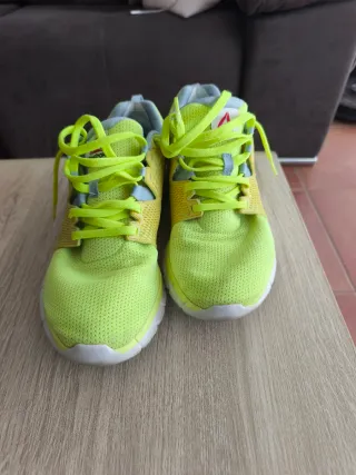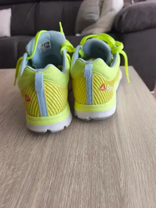 Zapatillas deportivas Reebok en llamativos tonos verdes y amarillos. - Diseño moderno y deportivo. - Cordones de ajuste. - Suela blanca. - OJO suela comida por la lavadora. - Me están pequeñas.