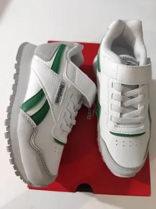 Zapatillas deportivas Reebok para niño en color blanco con detalles en verde. Cuentan con cierre de velcro para mayor comodidad. - Diseño deportivo. - Combinación de blanco y verde. - Cierre de velcro. - Talla EUR 27