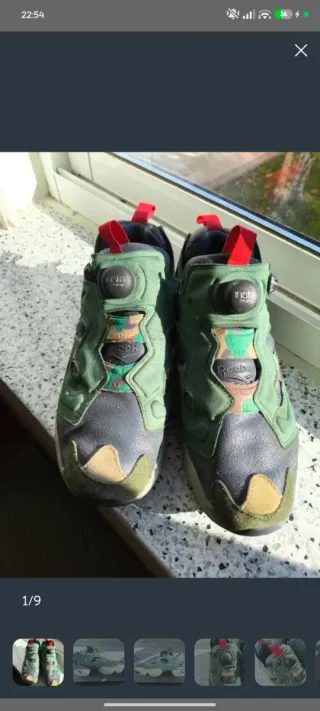 Zapatillas deportivas Reebok Pump con un diseño llamativo. - Combinación de colores verde y multicolor. - Cierre de cordones con sistema Pump. - Detalle de camuflaje.