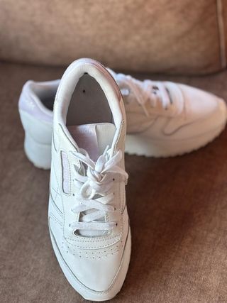 Bambas Reebok talla 39. Usadas 3-4veces. La suela y el interior algo manchado, por ser blancas; pero no tienen ningún desgaste más.