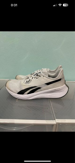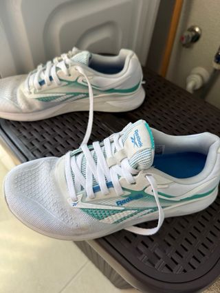 Zapatillas deportivas Reebok para mujer en talla 40.5. Un calzado cómodo y con estilo. - Diseño moderno. - Materiales de calidad. Están flamantes. Las compramos, se usaron unas horas y descubrimos que no eran de su estilo. Vueltas a la caja. Son de Junio 2023 Llevan todo este tiempo guradadas. No pasan de moda, por su color y diseño. Uno de los cordones está deshilachado, al tratar de sacar el plástico que unía las zapatillas a una etiqueta. No obstante, tiene un juego de cordones de recambio, que se puede ver en una de las fotos. Mirar bien las fotografías, pues no admitiré reclamaciones o devoluciones. .