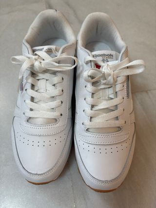 Zapatillas Reebok clásicas en color blanco. Han sido usadas muy pocas veces. - Diseño deportivo y versátil. - Cierre con cordones. - Suela de goma.