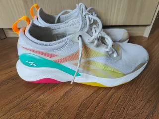 Zapatillas deportivas Reebok para entrenamiento HIIT. - Diseño multicolor con base blanca. - Detalles en tonos coral, amarillo y turquesa. - Cierre con cordones. - Tiradores en talón y lengüeta para facilitar su puesta.