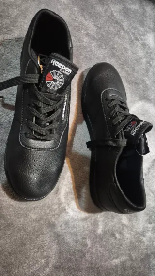 Zapatillas Reebok originales de cuero color negro. Talla 38, longitud de la plantilla 24,5 cm. Muy cómodas, con plantilla Ortholite Comfort. Usadas solo una vez, están como nuevas. Se venden porque no me quedó bien la talla.