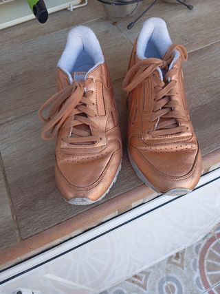 Zapatillas deportivas Reebok de estilo clásico con un llamativo acabado dorado. - Diseño icónico de la marca. - Cordones a juego con el color principal. - Suela blanca de goma.