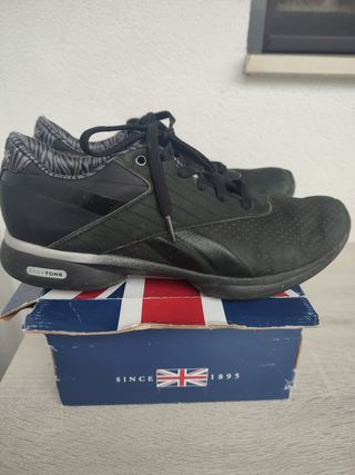Vendo zapatillas negras Reebok talla 38 con tecnología Easytone que fortalece los músculos de las piernas al andar, correr,... Están poco usadas y en muy buen estado tanto exterior como interior ( ver fotos). Guardadas con su caja y sus etiquetas originales. Venta en persona o con envio).