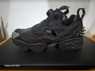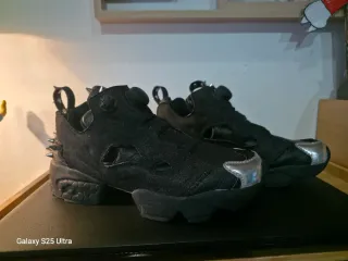 Zapatillas Reebok Instapump Fury con un diseño único edición especial de año 2016 - Acabado en negro y detalles plateados. - Decoradas con tachuelas metálicas. - Materiales mixtos en el exterior. -Solo le falta las plantillas,están como nuevas puestas un par de veces su estado es excelente