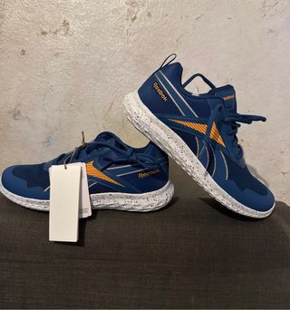 Zapatillas deportivas Reebok con un diseño moderno y llamativo. - Combinación de colores azul y naranja. - Cierre con cordones. - Detalle de logo en la puntera.