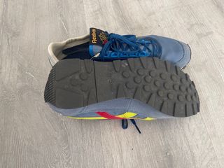 Zapatillas Reebok Classic talla 43. Combinan colores gris, negro, blanco y morado. Muy bonitas y muy cómodas. En muy buen estado. Se envían lavadas, como nuevas.