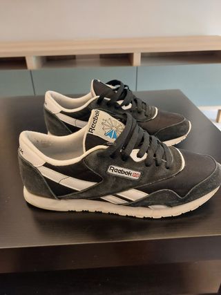 Zapatillas Reebok Classic, talla 41, de color negro. Son usadas, pero están en buen estado. - Fabricadas en Vietnam. - Cómodas y ligeras.