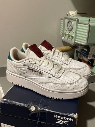 Prácticamente nueva, se ha usado 2 veces y se vende por no ser mi talla. El precio original en la tienda oficial es de 110€ visita reebok.eu/es-es/shopping/zapatillas-club-c-grounds-uk-23352849?storeid=14614&size=24
