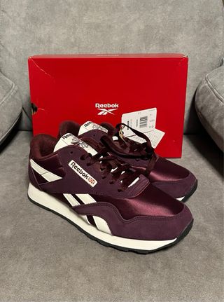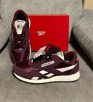 Zapatillas Reebok Classic Nylon en color burdeos y blanco. Un diseño icónico y versátil. - Parte superior de ante y nailon. - Suela de goma para mayor durabilidad. - Detalle de la franja lateral característica de Reebok.