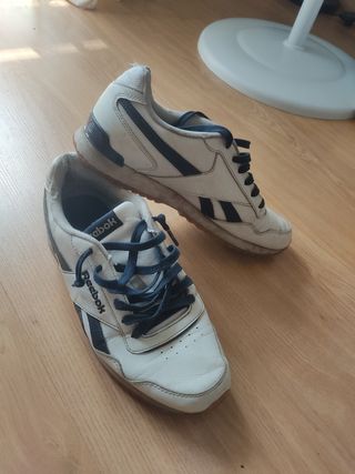 Zapatillas deportivas Reebok en color blanco con detalles azules. - Diseño clásico y versátil. - Logo de Reebok en los laterales y la lengüeta. - Muy buen estado.