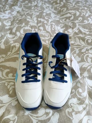 Zapatillas Reebok deportivas en color blanco y azul. Nuevas a estrenar, con etiqueta - Exterior de material sintético. - Forro interior textil. - Suela de goma termoplástica.