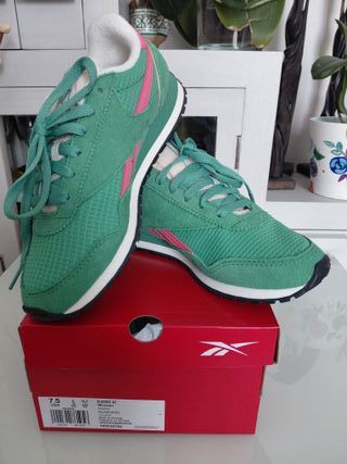 Zapatillas deportivas Reebok Classic Running. Totalmente nuevas. Fueron un regalo y me quedan grandes, no pude descambiarlas. - Color verde con detalles en rosa. - Suela blanca y negra. - Cierre con cordones.
