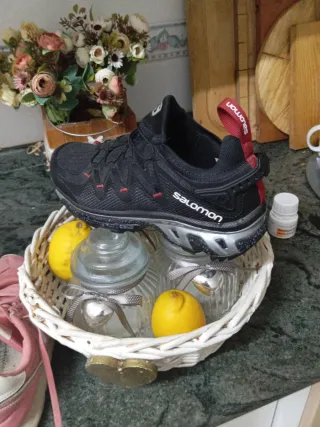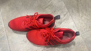 Zapatillas deportivas Adidas con un diseño moderno y llamativo. - Combinación de colores azul y rojo. - Detalles en gris en los laterales. Pureboost 5. Usada muy poco - Diseño en color azul con detalles en naranja. - Tiras laterales plateadas. - Suela azul borde bajo lateral negro TALLA 45 1/2 largo pie 29 como se aprecia foto Hecho