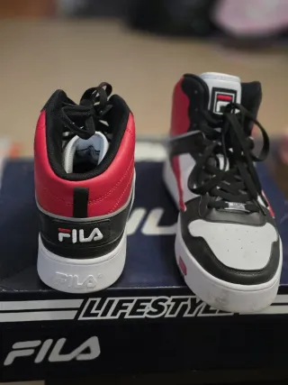 Zapatillas de caña alta de la marca Vans. Unisex. Muy cómodas y como nuevas, solo tiene un trozo de tela despegada en una zapatilla( ver foto). No envío. No negociable. Entrega Plaza legazpi. - Combinación de colores negro y rojo. - Diseño deportivo y urbano.