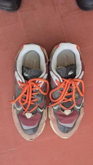 Zapatillas deportivas de color rojo, talla 38. También servirían para una 37. Con muy poco uso, como nuevas. Se entregan lavadas. - Diseño moderno y cómodo. - Cierre con cordones. - Suela blanca. - Detalle de etiqueta en el talón.
