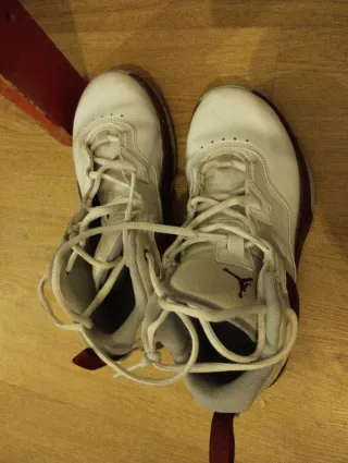 Zapatillas Nike Air Jordan Rojas originales de 150€. Las auténticas de Michael Jordan. Compradas por 150€ en el Corte Inglés. Buen estado general. En la zapatilla derecha he hecho un arreglo pero he usado hilo del mismo color y apenas se nota, lo ves en las fotos, pero hay q fijarse bien. A 1 metro de distancia en un partido es imposible verlo. Ideales tanto para baloncesto como para running. Ultra ligeras y muy flexibles. Marca talla 43 pero diría que es la 42,5.