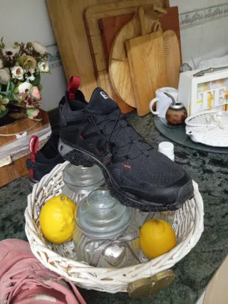 Zapatillas deportivas con un diseño moderno y llamativo. - Combinación de colores azul marino, blanco y detalles en rojo. - Cordones negros. están nuevas a estreno. me equivoqué de número al comprarlas