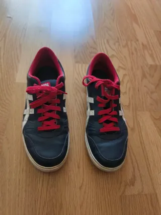 Zapatillas Asics para hombre. - Diseño en azul con detalles en rojo. - Cordones rojos. - Logo de Asics en blanco.