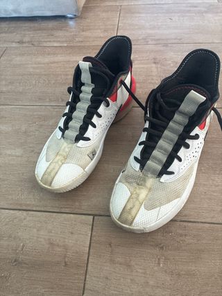 Zapatillas deportivas Jordan con un diseño moderno y llamativo. Precio muy negociable - Combinación de colores blanco y rojo. - Detalles en malla transpirable.
