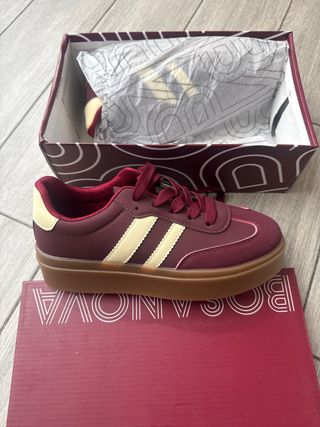 Zapatillas deportivas Adidas spezial en color rojo. - Diseño clásico con las tres rayas blancas. - Detalle de logo en la lengüeta. - Material de ante. La zapatilla izq tiene unas manchas blancas que con tinte rojo se tapa ( adjunto fotos en las imagenes) estan nuevas pero de estar en el trastero me las encontre asi