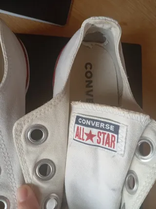 Zapatillas de lona en color burdeos y otras en color blanco, talla 41. - Cierre con cordones. - Suela gruesa para mayor comodidad al andar. - Detalle de logo en la plantilla. - 2 pares de zapatillas 20€, un par 12€.
