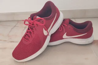 Zapatillas deportivas Nike para hombre en color rojo y talla 45. Perfectas para running o uso diario. - Diseño moderno y ligero. - Suela blanca. - Cierre con cordones.