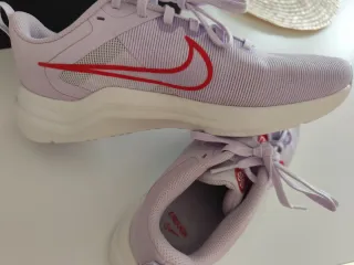 Zapatillas deportivas Nike Downshifter 12 para mujer. - Diseño en color morado con detalles en rojo. - Cierre con cordones. - Logo de Nike en el lateral y en la plantilla.