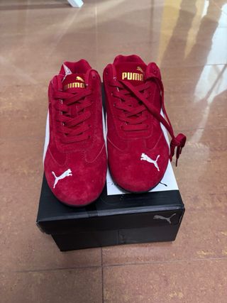 Zapatillas deportivas Puma de color rojo con detalles blancos. - Diseño deportivo. - Logo de Puma en dorado. Talla 39 pero van pequeños serian como una 38