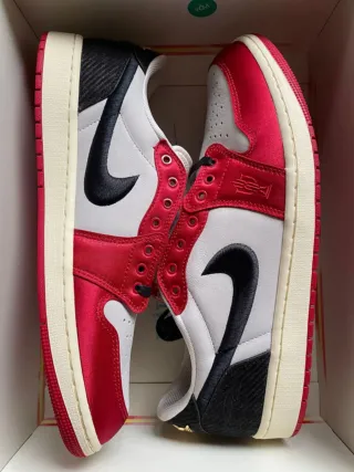 Zapatillas Jordan 1 Low con un diseño llamativo en rojo y blanco. Perfectas para coleccionistas y amantes del streetwear. - Combinación de colores rojo y blanco. - Diseño de caña baja.