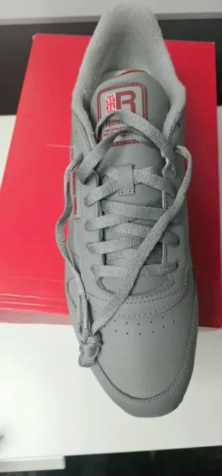 Zapatillas deportivas Reebok en tonos grises con detalles en rojo.Nuevas a estrenar,fabricadas en piel. Talla 45'5. - Diseño clásico. - Cierre con cordones. - Logo de la marca en el lateral.