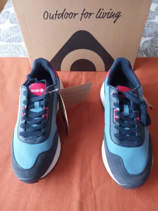 Zapatillas de la marca IZAS NUEVAS A ESTRENAR CON ETIQUETA Y CAJA en el número 45 USA 11 UK 10 la suela mide 30 cm de color azul con detalles en otros colores y son ORIGINALES PRECIO NO NEGOCIABLE Zapatillas deportivas Izas para hombre, talla 45. Combinan tonos azules y detalles en rojo. - Diseño moderno. - Cierre con cordones. - Suela blanca.
