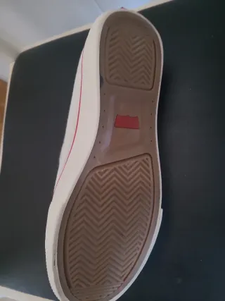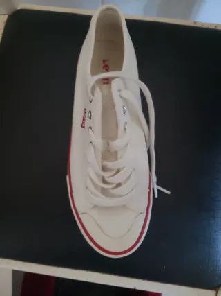 Zapatillas de lona Levi's, solo usadas una vez. - Zapatillas de lona. - Cierre con cordones. - Detalle de banda roja en la suela.