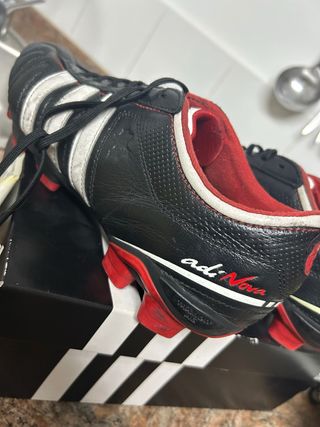 Zapatillas de fútbol Adidas adiNova en color negro y rojo. - Talla 42.5. - Diseño deportivo. - Marca Adidas.
