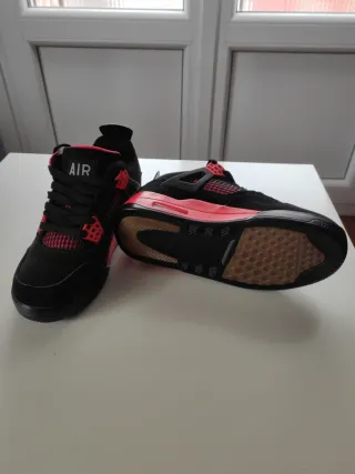 Zapatillas Jordan en colores negro y rojo. Son un modelo muy ligero y transpirable, perfectas tanto para uso diario como para entrenar. Tienen un diseño de media caña que ofrece un gran soporte al tobillo y el icónico logotipo Jumpman bordado en el lateral. Se encuentran en buen estado general, con las marcas naturales de uso que se ven en las fotos, pero muy bien cuidadas y con la suela íntegra. ¡Una oportunidad genial para tener unas Jordan originales a buen precio! Hago envíos rápido.