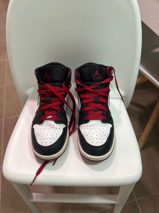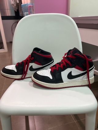 Air Jordan 1 Mid GS Gym Red Black - Talla 37,5 Categoría: Moda y Accesorios > Zapatillas Precio: 85 € Descripción: Vendo zapatillas Air Jordan 1 Mid originales en el icónico colorway Gym Red (Blanco, Negro y Rojo). Es la edición "Grade School" (GS), perfecta para quien calce un 37.5. Las zapatillas están muy bien cuidadas, con el cuero en excelente estado y manteniendo su forma original. Se pueden ver todos los detalles en las fotos. Modelo: Air Jordan 1 Mid GS (554725-122) Talla: 37,5 EUR (5Y US) Color: White / Gym Red / Black Estado: Muy buen estado, poco uso. Envío: Hago envíos por Wallapop o entrega en mano en .