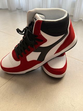 Zapatillas altas de la marca Diadora. - Puestas solo una vez - Diseño deportivo en color rojo y blanco. - Cierre con cordones negros. - Detalle de logo en el lateral. Mira mis recomendaciones
