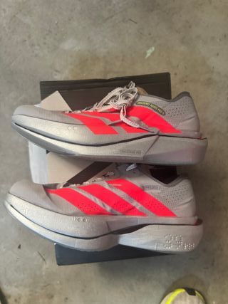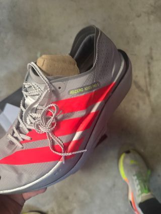 Zapatillas de running Adidas Adizero Adios Pro 5. - Diseño en color gris con detalles en rojo. - Modelo Adizero Adios Pro 5. Están sin usar se venden por equivocación de talla