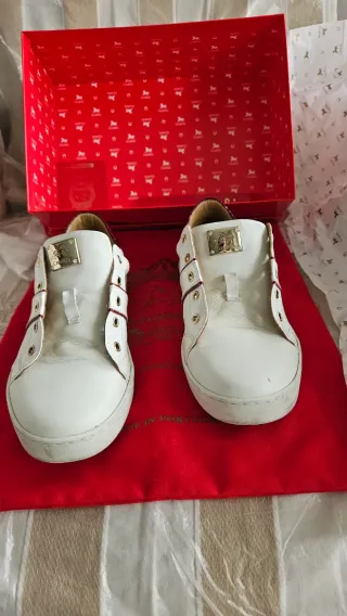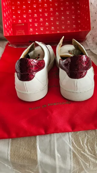 🟥 Color: Rojo con logo bordado en azul marino. 📏 Talla: 43. 🧵 Material: Alta calidad, resistente y elegante. 🧳 Incluye su caja original. ✅ Muy poco uso – En perfecto estado. ✔️ Perfectas para combinar con looks casuales y urbanos. ✔️ Marca premium que garantiza estilo y durabilidad.