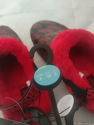Zapatillas de casa inspiradas en el Demogorgon de Stranger Things. Perfectas para los fans de la serie. - Diseño con forma de flor roja. - Base negra. - Talla L (equivalente a 41-42).