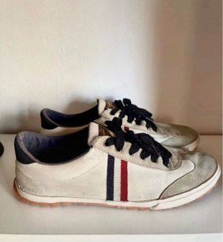 Zapatillas de la marca El Ganso en color blanco con detalles multicolores. Talla 41 aunque también valen para una 42. Color blanco. Unisex. En perfecto estado sin desperfectos. - Diseño clásico de zapatilla. - Cordones azul marino. - Tira lateral tricolor (rojo, blanco, azul). - Suela de goma.