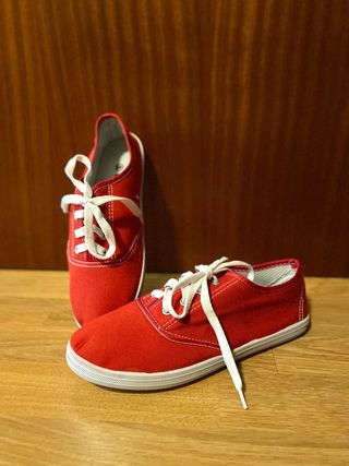Zapatillas rojas de lona, perfectas para el día a día. - Son de lona. - Tienen cordones blancos. - Sin estrenar