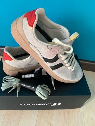 Zapatillas de la marca Coolway con un diseño moderno y detalles llamativos. - Combinación de colores beige y rojo. - Materiales de calidad. - Incluye cordones adicionales. - como nuevas se han usado muy poco - caja original